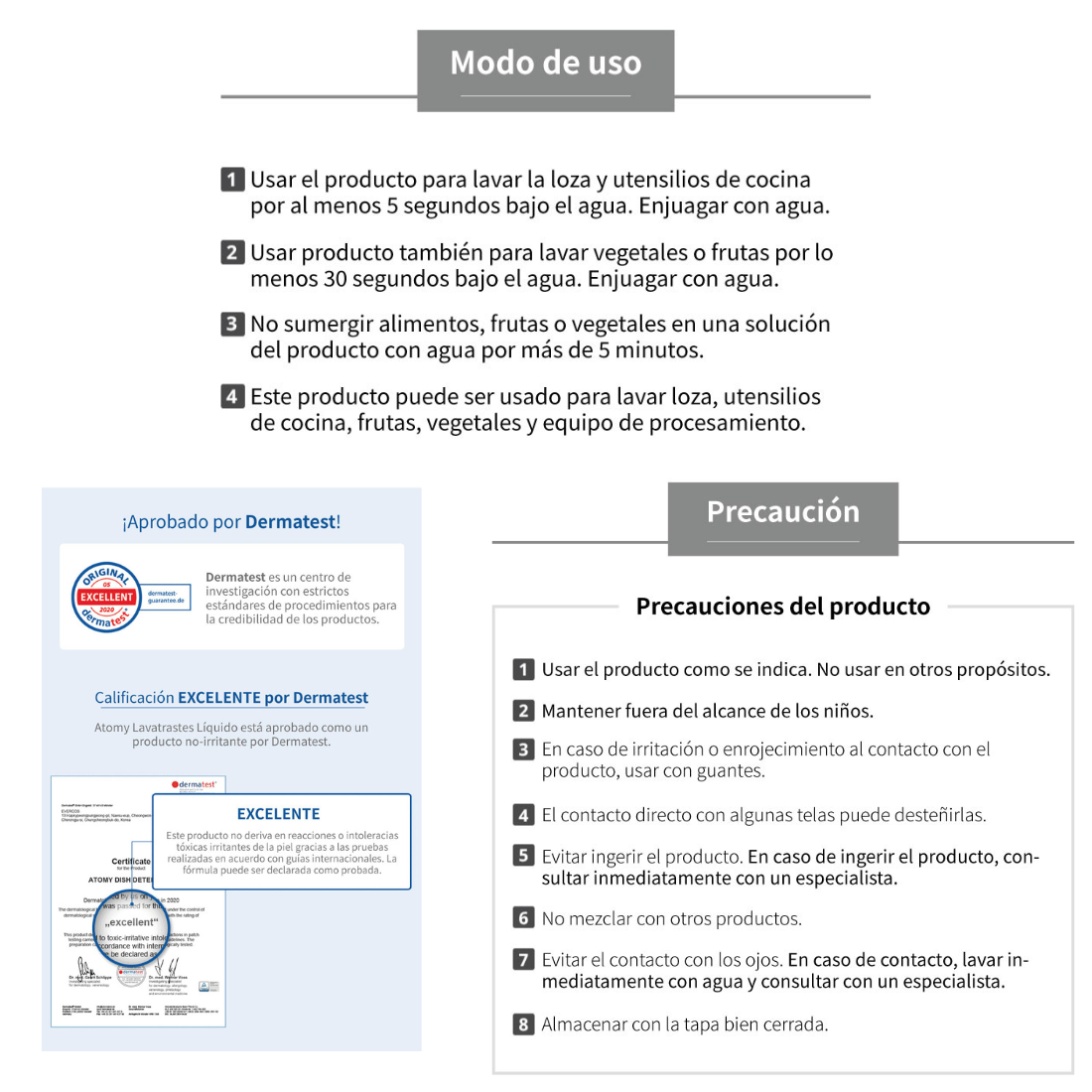 Este producto puede ser usado para lavar la loza, utensilios de cocina, frutas, vegetales y equipo de procesamiento.